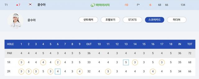 2R : 6언더파 66타(버디 7개, 보기 1개) 합계 10언더파 134타 공동1위