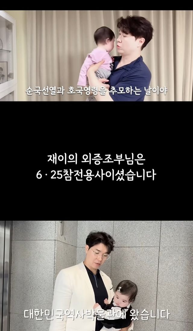 공개된 영상에서는 현충일을 맞아 박수홍 김다예 부부가 딸 재이와 함께 대한민국 역사박물관을 찾은 근황이 담겼다.