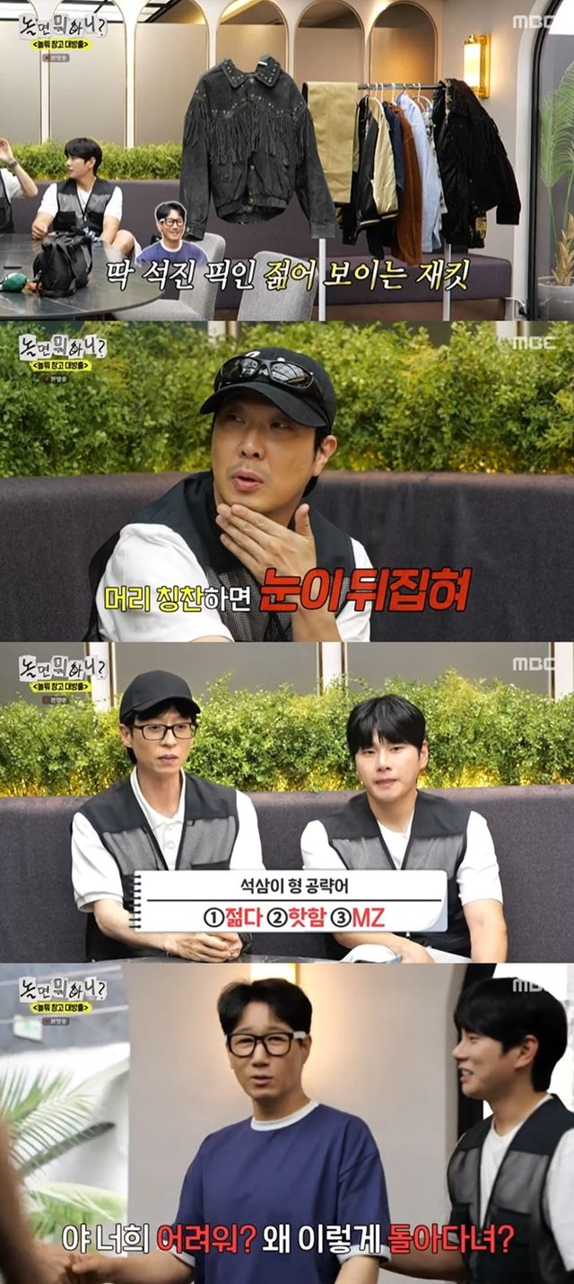 이어 지석진이 등장했고, 지석진은 "너희 어려워? 왜 이렇게 돌아다녀"라고 말해 웃음을 안겼다. 지석진을 본 주우재는 곧바로 "형님 뭐 시술받으셨어요?"라며 칭찬하기 시작했다.