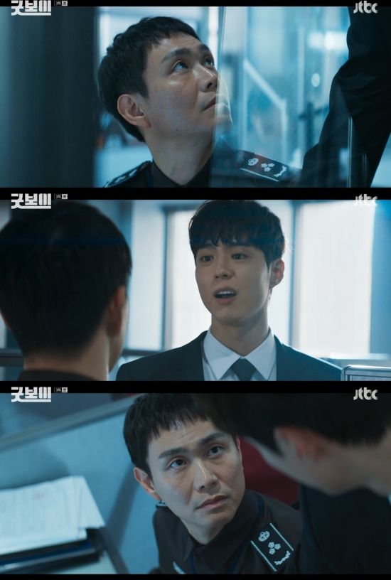 7일 방송된 JTBC 새 토일드라마 '굿보이' 3회에서는 윤동주(박보검 분)가 민주영(오정세)을 뺑소니범으로 의심한 모습이 그려졌다.