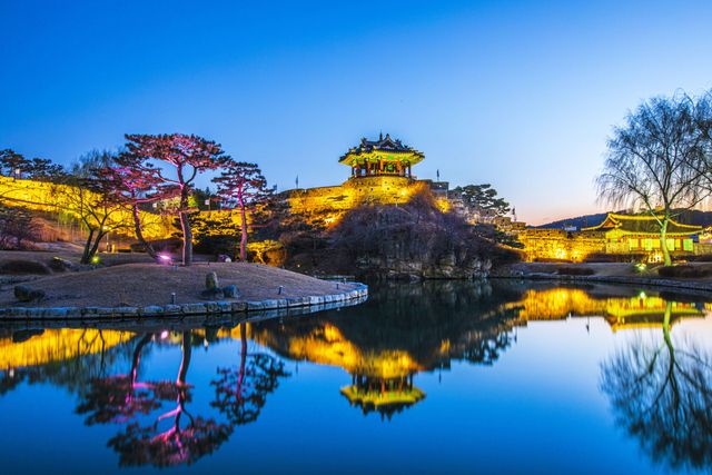 해가 지면 수원화성의 새로운 매력이 드러납니다. 조명이 비추는 성곽과 그림자는 신비로운 매력을 더합니다. 행궁동 골목은 작은 전구들이 켜져 더욱 아늑해집니다. 밤하늘 아래 빛나는 성곽을 걷다 보면 역사를 간직하고 있는 도시의 낭만을 느낄 수 있습니다.