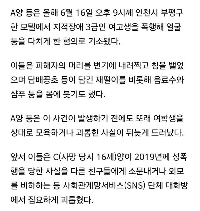 장애인 또래 모텔로 끌고가서 악랄하게 집단폭행