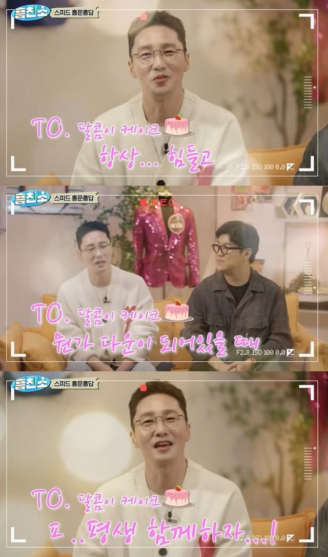 다시 영상편지에 도전한 황동주는 "언제나 내 옆에서 달콤함을 선물해주고 행복을 선물해줘서 너무 고마워"라고 운을 뗀 뒤 "평생 함께하자"라고 전했다.