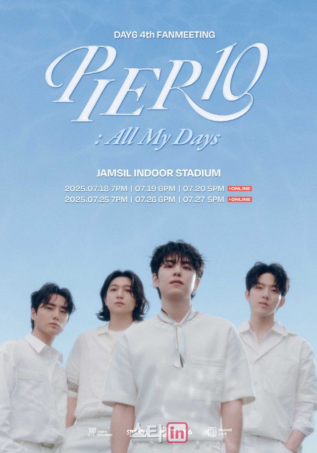 소속사 JYP엔터테인먼트는 지난 7일 오후 데이식스의 공식 SNS 채널에 포스터를 게재하고 데이식스 네 번째 공식 팬 미팅 ‘피어 텐: 올 마이 데이즈’(PIER 10: All My Days) 개최 소식을 전했다.