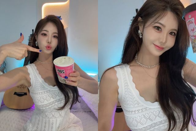 공개된 사진 속 강예빈은 화이트 원피스를 입고 아이스크림을 먹으려는 듯 포즈를 취하고 있는 모습이다. 화려한 이목구비에 늘씬한 S라인 몸매로 눈길을 끈 강예빈은 장난기 넘치는 표정으로 사랑스러운 매력을 더했다.