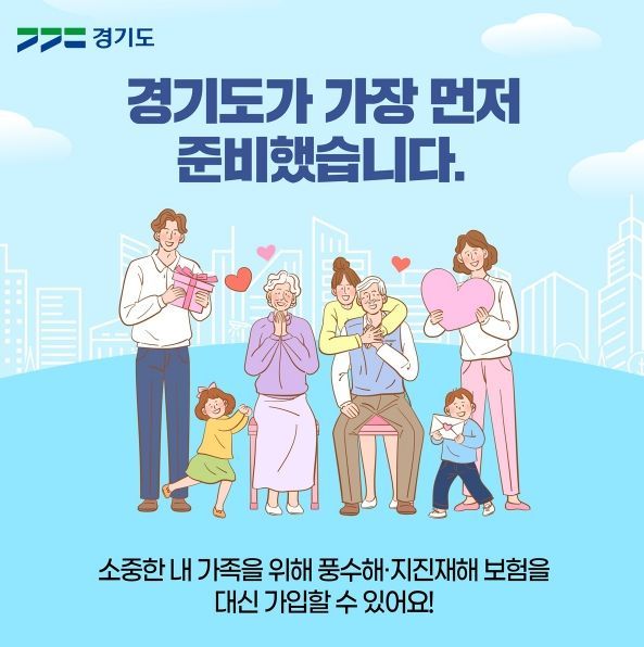 [와이뉴스] 경기도가 풍수해·지진재해보험의 사각지대 해소를 위해 가족이나 지인들이 대신 보험에 가입해 주는 ‘타인에 의한 가입’ 시스템을 전국 최초로 도입하고, ‘보험 선물하기’ 캠페인을 추진한다.