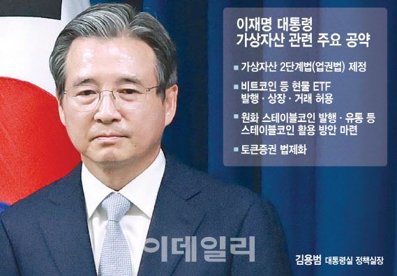 여기에 가상자산 업계는 지난 6일 김 전 차관이 대통령실 정책실장에 임명되자 기대감이 커지고 있다. “가상자산에 대한 이 대통령의 관심이 반영된 것 아니냐”는 해석도 나왔다. 김 정책실장은 세계은행 선임이코노미스트, 금융위원회 부위원장, 기재부 1차관 등을 지낸 경제 관료 출신으로 퇴임 후 코인 관련 업계로 이직했다. 2022년부터 최근까지 해시드오픈리서치 대표를 맡은 그는 스테이블코인을 지렛대로 한국이 미국과 함께 ‘디지털 G2’로 도약해야 한다는 소신을 밝혀왔다. 지난 3월 낸 ‘원화 스테이브코인 필요성과 법제화 제안’이라는 제목의 보고서에선 “제조업 경쟁력을 유지하는 범위 내에서 원화 스테이블코인의 강점을 살린다면, 원화는 타국 화폐 대비 경쟁력을 유지할 수 있을 것”이라고 주장했다. 이 대통령도 정책 공약집에서 “원화 스테이블코인 발행, 유통 등 스테이블코인 활용 방안을 마련하겠다”고 약속한 바 있다. 원화 스테이블코인 허용 가능성에 무게가 실리는 이유다.