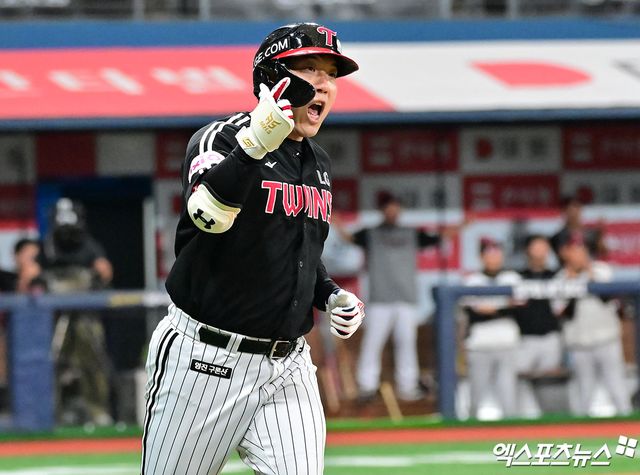 염경엽 감독이 이끄는 LG는 8일 서울 고척스카이돔에서 열린 '2025 신한 SOL Bank KBO리그' 키움과의 원정경기에서 7-2로 승리했다. 2연패에 빠지며 2위 한화 이글스에게 반 경기 차로 쫓겼던 LG는 이날 승리로 시즌 전적 38승1무25패를 만들고 1위를 사수했다.