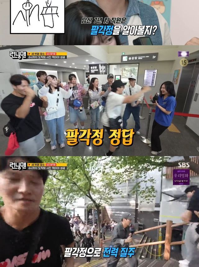 이를 들은 멤버들은 미션 성공 예감에 긴장한 모습을 보였고, 직원은 멤버들의 기대에 부응한 듯 "팔각정"이라고 답했다.