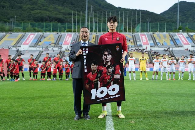 이중민은 지난 5월 24일, 천안과의 하나은행 K리그2 2025 13라운드 경기에 교체 출전하며 K리그 100번째 출전 기록을 세웠다.