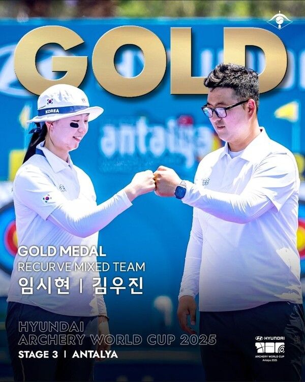 임시현은 김우진(청주시청)과 함께 나선 혼성 단체전 결승에서 독일을 6-2(39-38 38-40 37-35 41-37)로 꺾고 우승해 대회 2관왕을 차지했다.