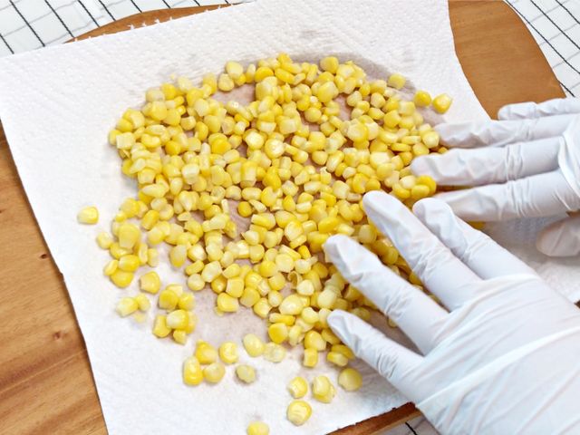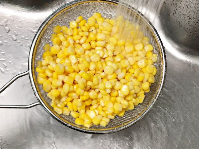 캔옥수수는 체에 받쳐 흐르는 물로 헹궈주세요.