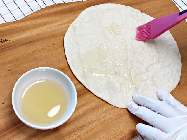 또띠아 한장 위에 꿀을 골고루 발라주세요.