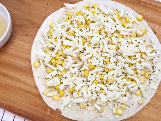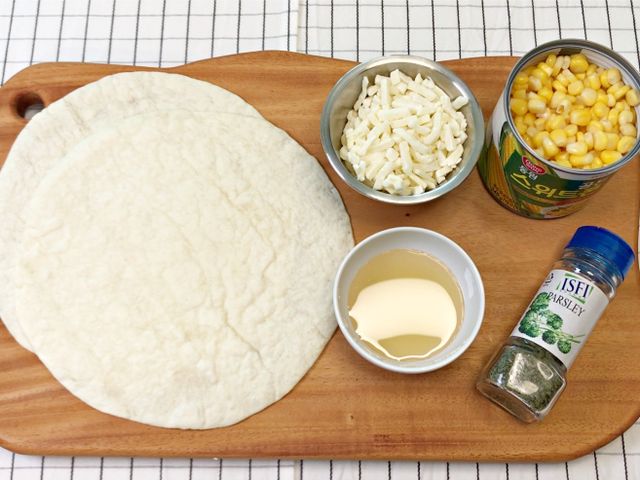 캔옥수수, 또띠아, 모짜렐라치즈, 꿀 준비 끝.