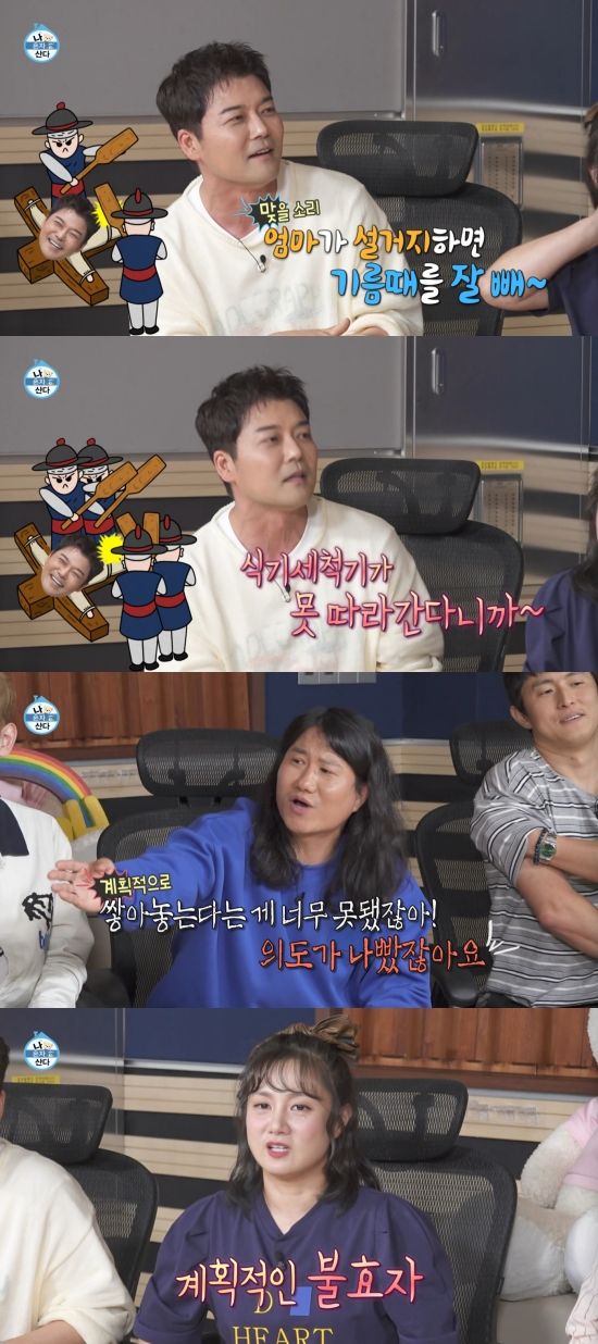 그러나 '나혼산' 멤버들의 격한 반응에도 전현무는 아랑곳하지 않고 "이상하게 엄마가 설거지를 하면 기름때를 잘 뺸다. 식세기가 못 따라간다니까"라고 말해 원성을 자아냈다.