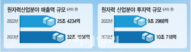 최근 산업 현황도 회복세를 보이고 있다. 한국원자력산업협회에 따르면 2023년 국내 원자력 산업 총 매출은 32조1556억원으로, 전년도 25조4234억원보다 26.5% 증가했다. 같은 기간 투자액도 9조2968억원에서 10조718억원으로 8.3% 늘었다.