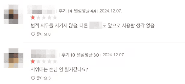 네티즌 중 일부는 호텔에 1점 별점을 주며 불만을 표출했습니다.