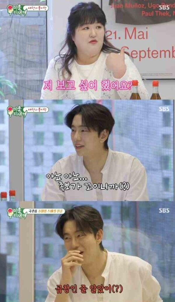 이국주의 거침없는 플러팅을 스튜디오에서 지켜보던 MC 서장훈은 윤현민의 어머니에게 "며느릿감으로 이국주 어떻냐"고 직설적으로 물었다. 이에 윤현민 어머니는 "아들이 밝지 않아서 과묵하고 우울해 보인다. 그래서 개그맨 같은 친구랑 사귀면 좋겠다고 했다. 밝고 명랑하고 재미있으니까"라며 이국주에게 긍정적인 호감을 드러냈다.