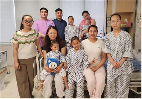 이번 몽골 환아에 대한 의료나눔의 주치의와 집도의는 각각 방지석 과장(소아청소년과), 김응래·임재홍 과장(소아흉부외과)이 맡았다. 또 국내 초청과 진료비·체류비 등 후원은 성안심장재단, 세종병원(의료나눔 후원금 사랑yes)이 담당했다.