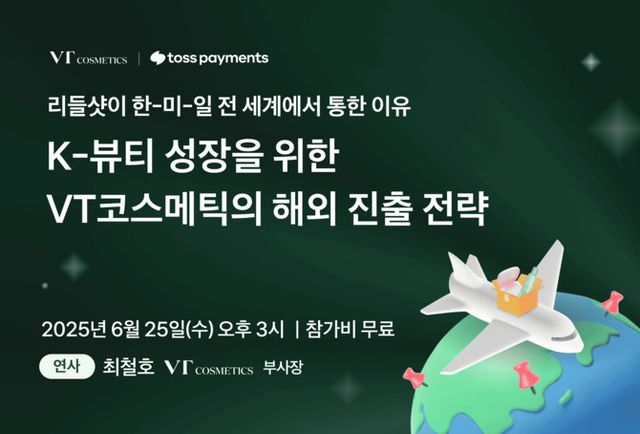 이달 25일에는 K-뷰티 브랜드 'VT코스메틱'의 글로벌 진출 성공 전략을 주제로 두번째 웨비나를 연다. 최철호 VT코스메틱 부사장이 연사로 나서 '리들샷'을 성공으로 이끈 비결을 소개한다. 인디 뷰티 브랜드로서 한국, 일본, 미국 등 시장에서 성과를 거둔 판매 전략과 성장 로드맵도 공개한다. 이어 토스페이먼츠 글로벌세일즈팀 황규호 리더가 국가별 현지 고객이 선호하는 결제 시스템 도입법을 소개한다.