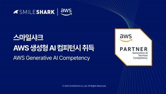 한편 스마일샤크는 지난해 AWS 프리미어 티어 파트너로 선정됐으며, 올해 5월 열린 AWS 서밋 서울 2025(AWS Summit Seoul 2025)에서는 ‘AI Agent 내재화 전략: 수동 업무 80% 대체, 어떻게 가능했나?’ 주제의 세션을 진행하며 생성형 AI 분야에서의 기술력을 대내외에 입증했다.