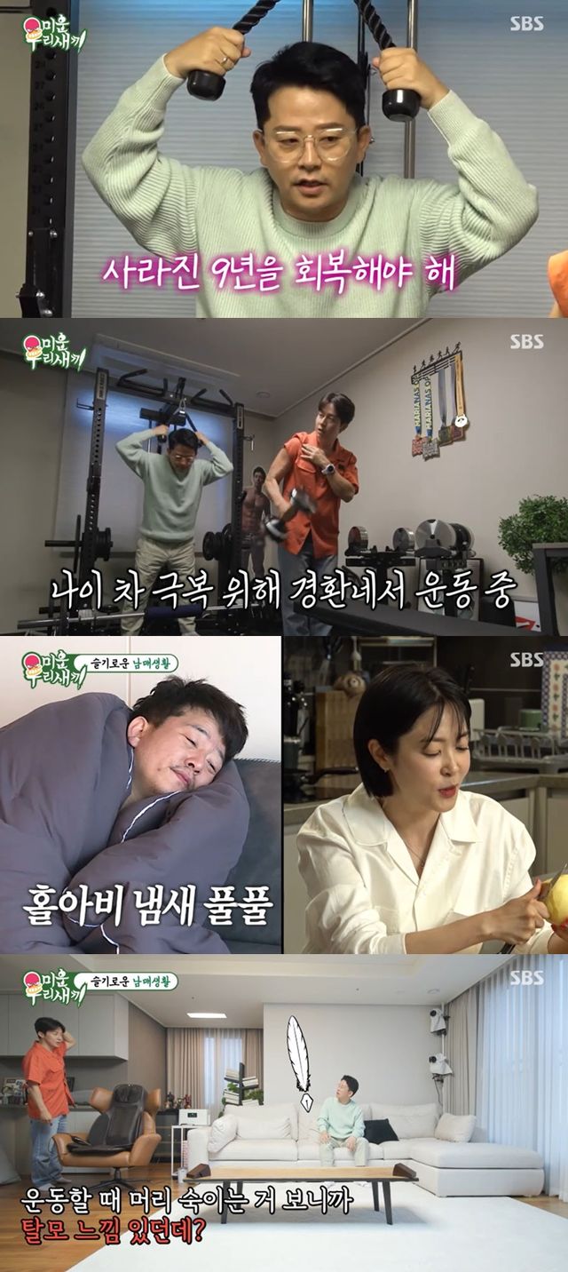 이를 본 추성훈은 "자기 집에 (운동방) 있는 거 진짜 좋아"라며 감탄했다. 또 김준호는 허경환과 함께 운동중이었는데, 김준호는 "난 운동해야 해 진짜. 지민이랑 9년 차이잖아. 사라진 9년을 내가 지금 회복해야 돼"라며 9살 나이 차이를 극복하려 노력하는 모습이었다.