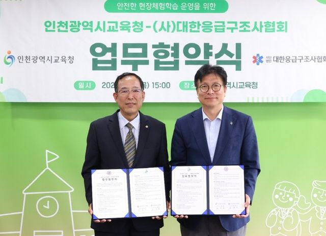 [파이낸셜경제=김영란 기자] 인천광역시교육청은 5일, (사)대한응급구조사협회와 학생과 교원의 안전한 현장체험학습 운영 지원을 위한 업무협약을 체결했다.