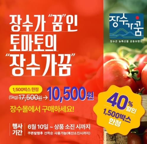 군은 “장수가 ‘꿈’인 토마토의 ‘장수가꿈’”이라는 주제로 장수군의 청정 자연에서 정성껏 가꾼 신선한 토마토를 먹고 건강하게 오래 사는 삶, ‘장수의 꿈’을 전한다는 의미를 직영 온라인 쇼핑몰인 ‘장수몰’을 통해 국민에게 전달하고자 이번 할인 행사를 기획했다고 9일 밝혔다.