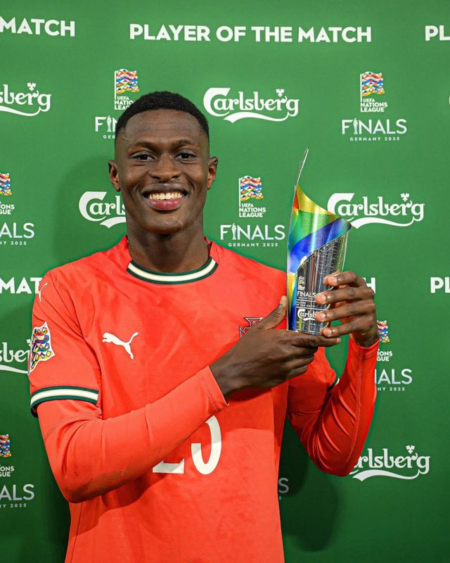 포르투갈 대표팀 수비수 누누 멘데스(파리 생제르맹)가 유럽축구연맹(UEFA) 네이션스리그(UNL) 결승전서 상대 공격수 라민 야말(바르셀로나)을 꽁꽁 묶은 활약이 조명받았다.