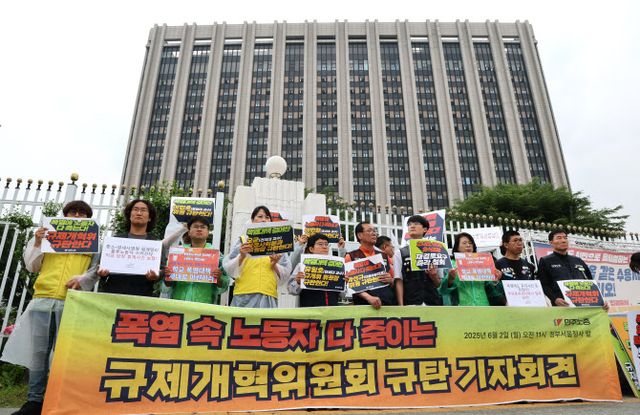 9일 노동계에 따르면 고용노동부는 폭염과 관련된 ‘산업안전보건법 개정안’에 대한 하위 규칙 재정 작업에 다시 나섰다. 규제개혁위원회가 ‘2시간 작업 시 20분 휴식해야 한다’는 내용을 규칙에서 빼라고 권고했기 때문이다. 하위 법령이 없을 경우 현장은 온전히 사업주 재량으로 돌아간다.