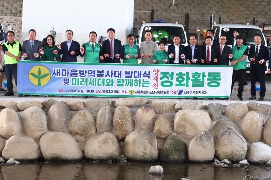 [파이낸셜경제=김영란 기자] 꿈이 모이는 도시, 미래를 그리는 강남구가 강남구 새마을회(지회장 이종선)와 함께 6월 9일 양재천 영동3교에서 ‘2025년 새마을 방역봉사대 발대식’과 ‘어린이와 함께하는 양재천 정화행사’를 열었다.