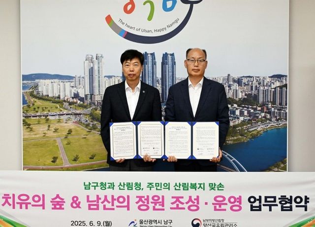 [파이낸셜경제=김영란 기자] 울산 남구는 9일 산림청 양산국유림관리소와 ‘치유의 숲 및 남산의 정원 조성·운영’을 위한 업무협약을 체결했다.