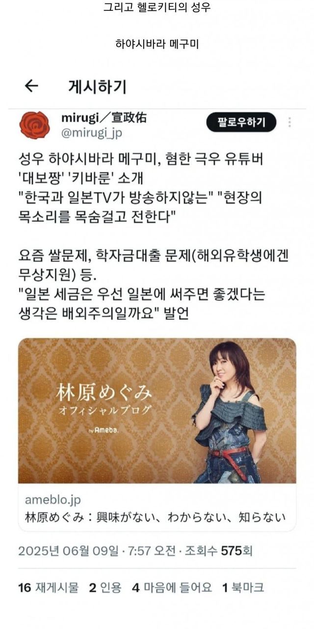 유명 애니 캐릭터의 성우, 극우 혐한 코인 인증