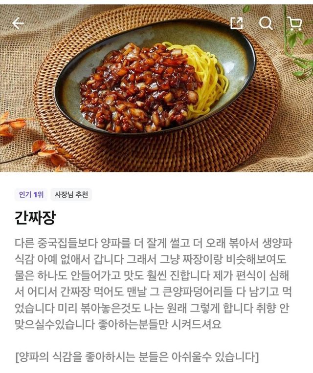 간짜장 양파 잘게 썰고 탕수육 소스엔 야채 빼는거 보면 편식하는 사람이면 GOAT 식당