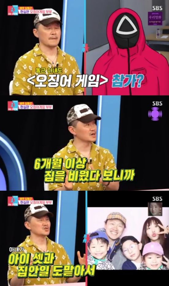 이를 들은 김구라는 "유명한 작품에 출연하니까 뭐라고 하지도 못하고"라면서 웃었고, 양동근은 "'오징어게임' 출연한다고 했더니 다른 작품 때는 보지 못했던 표정을 봤다"면서 아내를 따라해 웃음을 줬다.