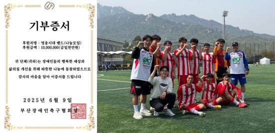 (엑스포츠뉴스 이정범 기자) 임영웅 팬클럽이 부산 뇌성마비 축구팀에 1,000만 원을 기부했다.