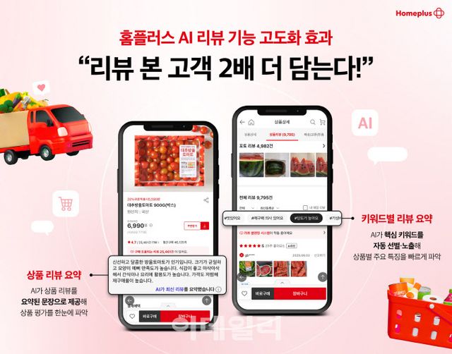 홈플러스는 지난달 △리뷰 요약 △키워드 자동 추출 기능을 새롭게 도입했다. AI가 최근 3개월간 작성된 리뷰를 기반으로 상품별 평가를 간결하게 정리해 제공하며, ‘맛있어요’, ‘가성비 좋아요’ 등 주요 키워드를 선별해 관련 리뷰 탐색도 용이해졌다.