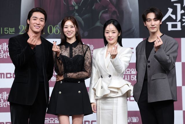 드라마 '태양을 삼킨 여자' 제작발표회에 참석한 배우 서하준(왼쪽부터), 장신영, 윤아정, 오창석 / 뉴스1