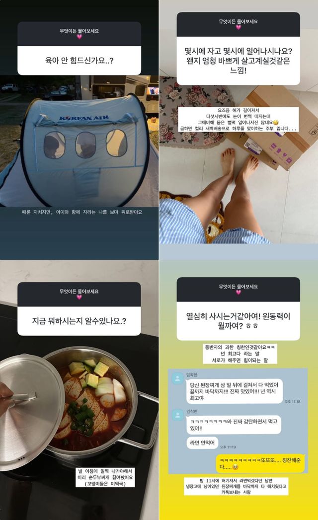 이날 서하얀은 "육아 안 힘드신가요?"라는 질문에 "때론 지치지만 아이와 함께 자라는 나를 보며 위로 받는다"고 답했다.