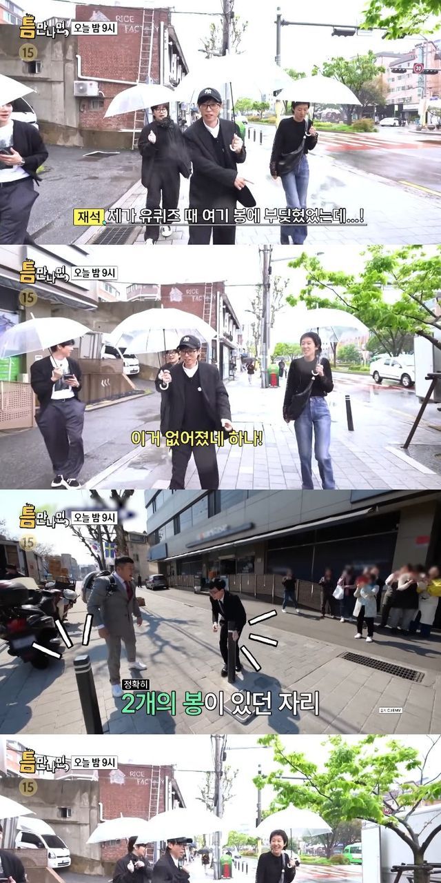 (엑스포츠뉴스 김보민 기자) 유재석이 6년 전 볼라드에 부딪혔던 자리를 지나갔다.