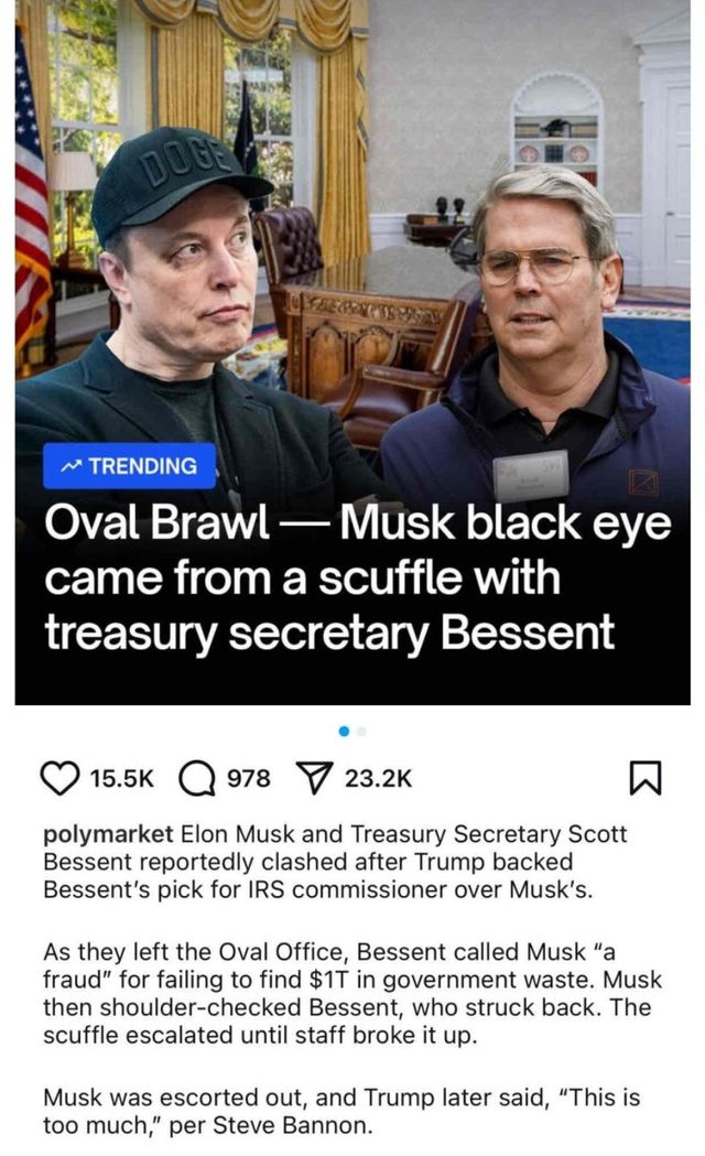 재무부장관이랑 싸움ㅋㅋ장관이 머스크한테 사기꾼이라한거 듣고빡쳐서 머스크가먼저 태클걸었다함ㅋㅋ