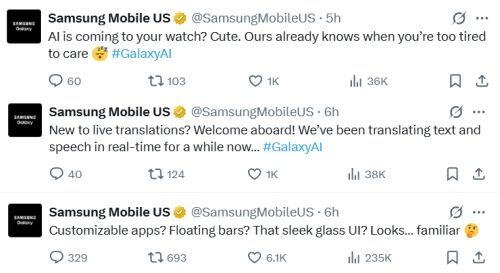 삼성전자 미국법인은 이날 오전 공식 엑스(X·옛 트위터) 계정을 통해 "AI가 애플워치에 이제 적용된다고? 귀엽네~"라며 조롱했다.
