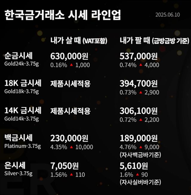 순금(24K) : 매입가 63만 원 / 매도가 53만 7000원