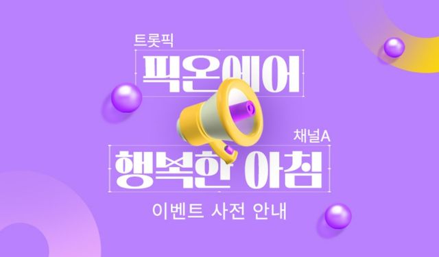 트롯 문화를 사랑하는 사람들을 응원하는 서비스 트롯픽(trotpick) 측은 10일 “‘채널A [행복한 아침]에서 만나고 싶은 가수는?’을 주제로 이벤트를 연다”라며 “내가 좋아하는 가수를 방송에 출연시키고 직접 방청까지 할 수 있는 절호의 기회를 놓치지 말아달라”라고 알렸다.