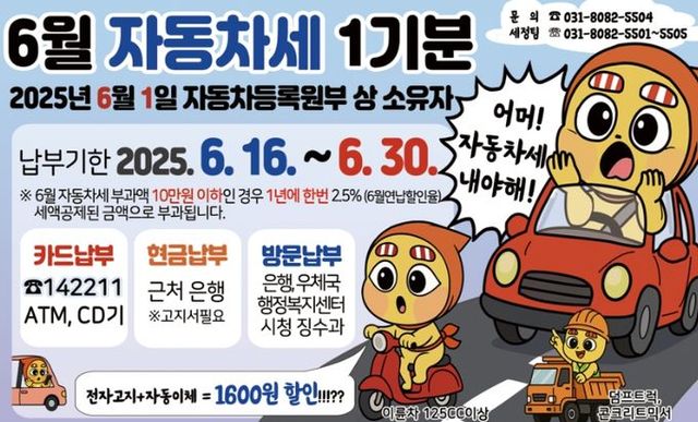 납세 대상은 2025년 6월 1일 기준 양주시 자동차등록원부상 등록 소유자이며 납부 기한은 오는 30일까지다.