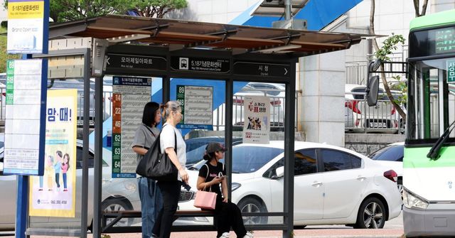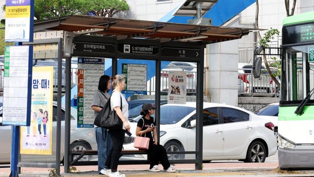 10일 오전 광주 서구 쌍촌동 한 버스정류장에서 시민들이 버스를 기다리고 있다. / 연합뉴스