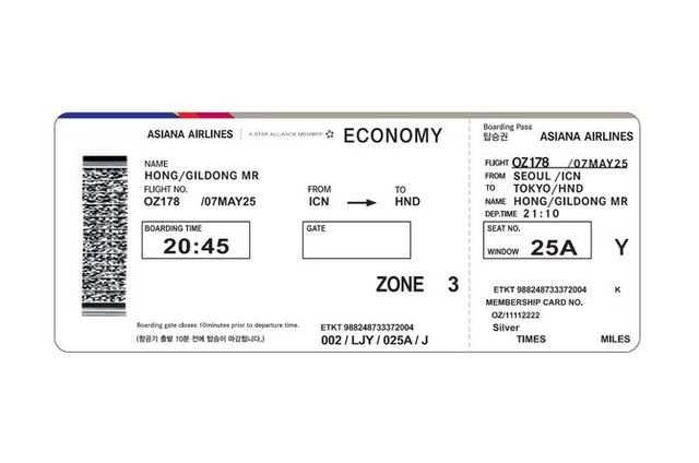 아시아나 존 보딩 탑승권 이미지. ⓒ 아시아나항공