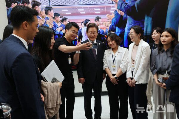 이 대통령은 매점을 나서며 대통령실 로고가 그려진 벽면의 대형 스크린을 배경으로 기자들과 기념 사진을 찍기도 했다.