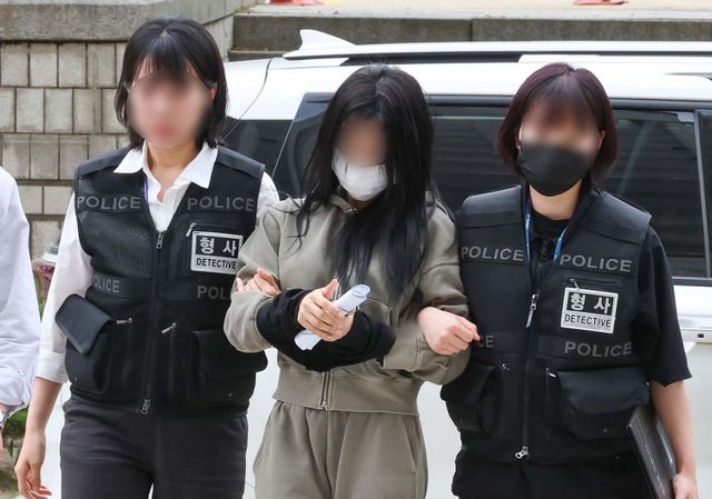 축구 국가대표팀 주장 손흥민을 상대로 돈을 받아내려해 공갈 혐의를 받고 있는 양씨(20대 여성)가 5 17일 서초구 서울중앙지방법원에서 열린 구속 전 피의자심문(영장심사)에 출석하고 있다. / 뉴스1
