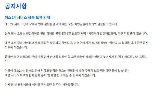 아울러 전자상거래 사업자인 예스24가 사이버 공격 발생 시 24시간 내 관계기관에 신고해야 하는 규정을 준수했는지 여부는 아직 확인되지 않았다.